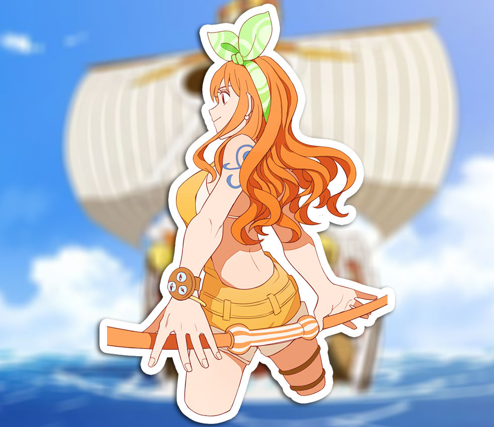 Stampede Nami - One Piece Sticker is printed on beautiful, vibrant colors on vinyl sticker paper. This sticker is perfect for water-bottles, hydroflasks, laptops, tablets, iPads, tumblers, journals and notebooks.